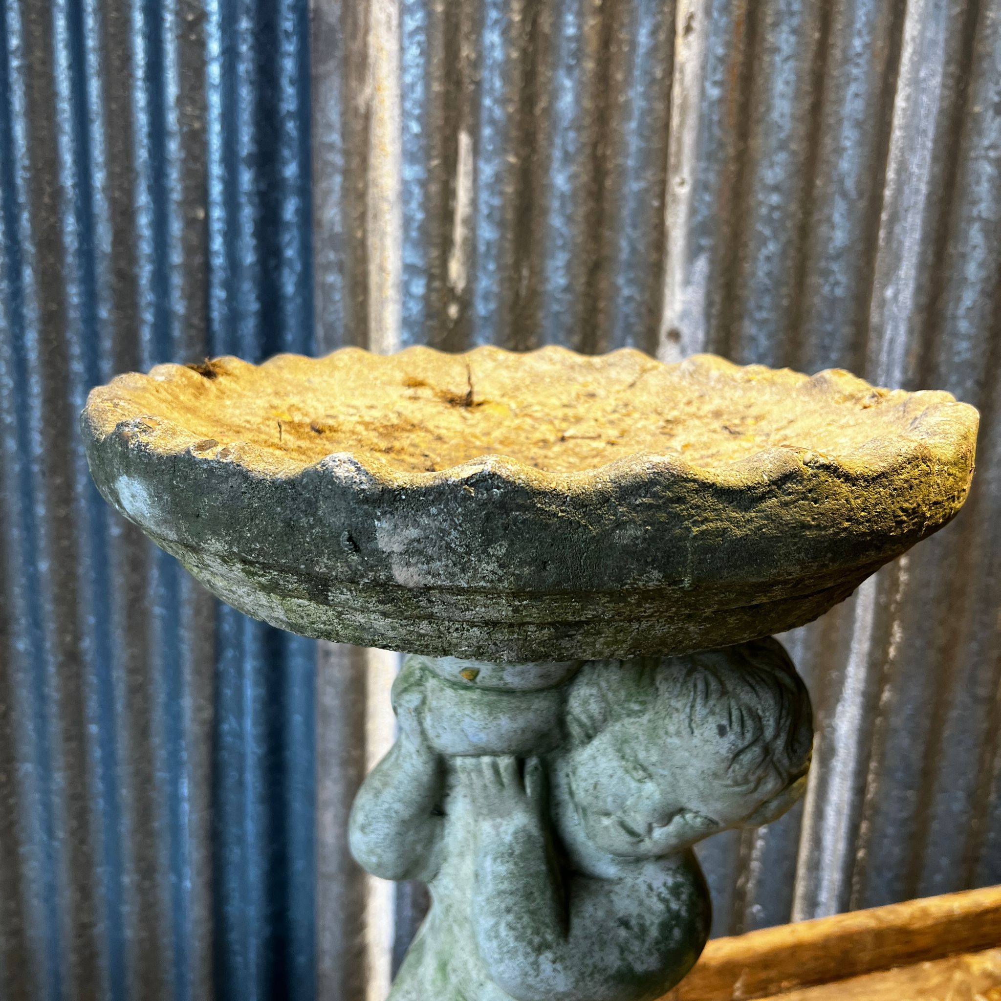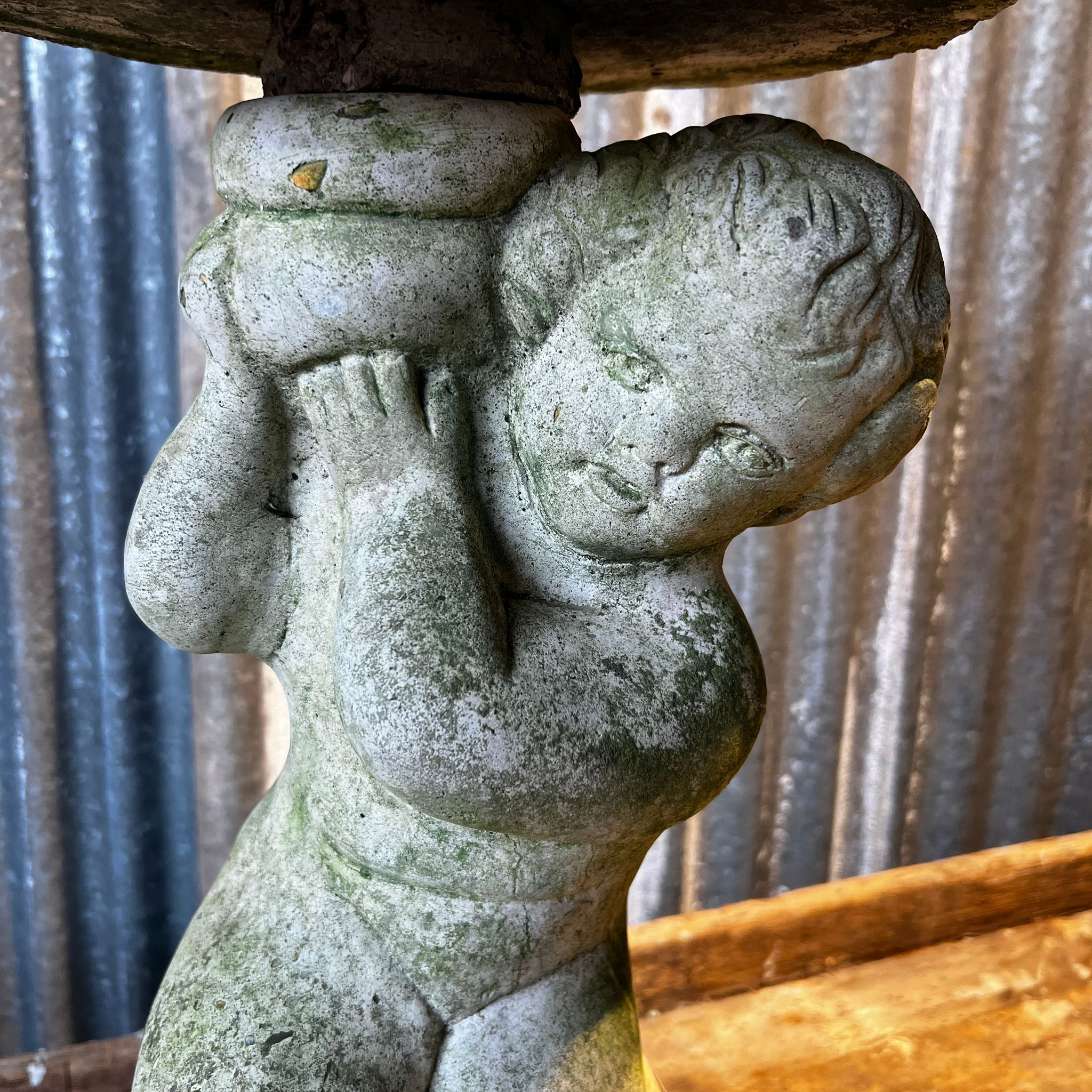Statut tenant une vasque. Béton. Années 60.