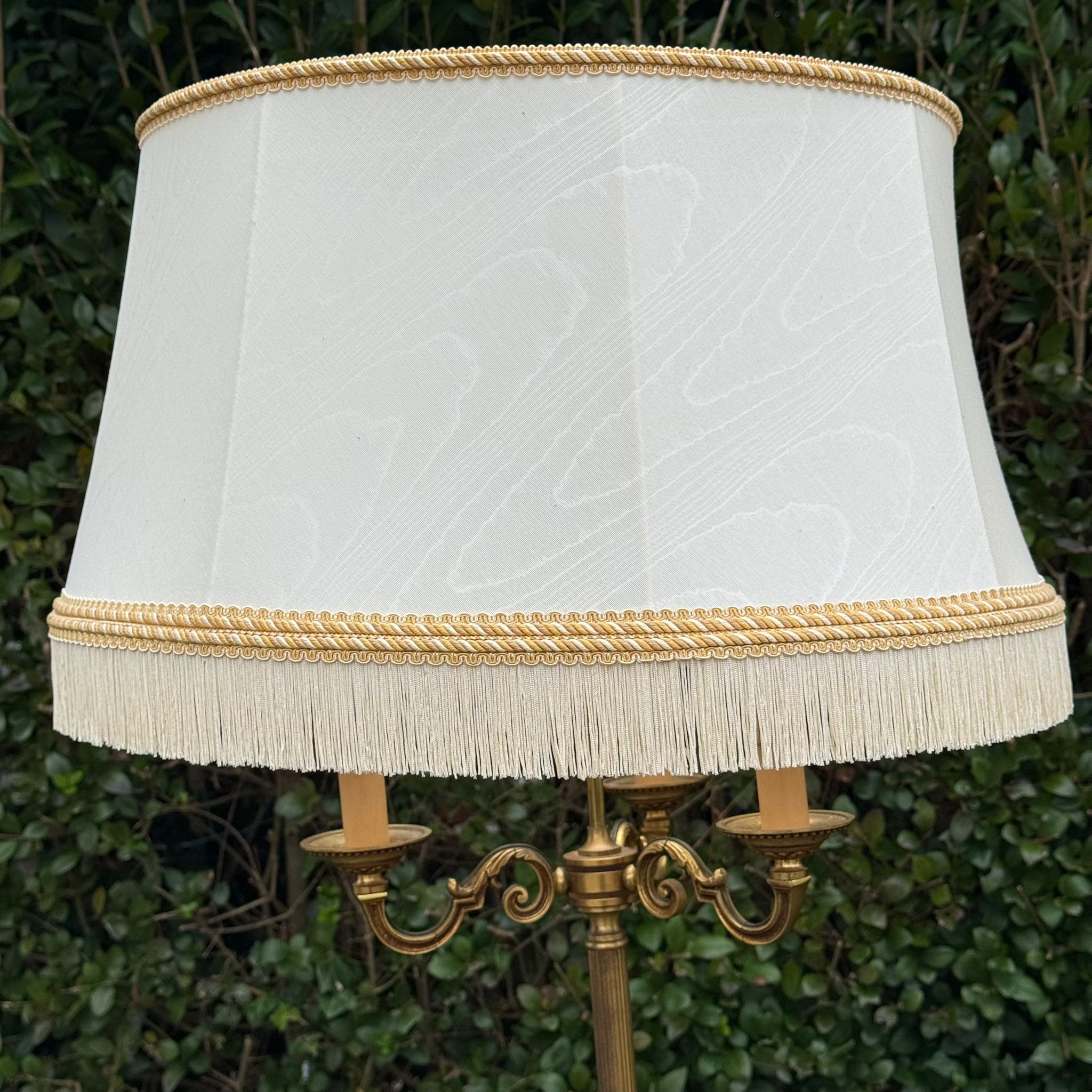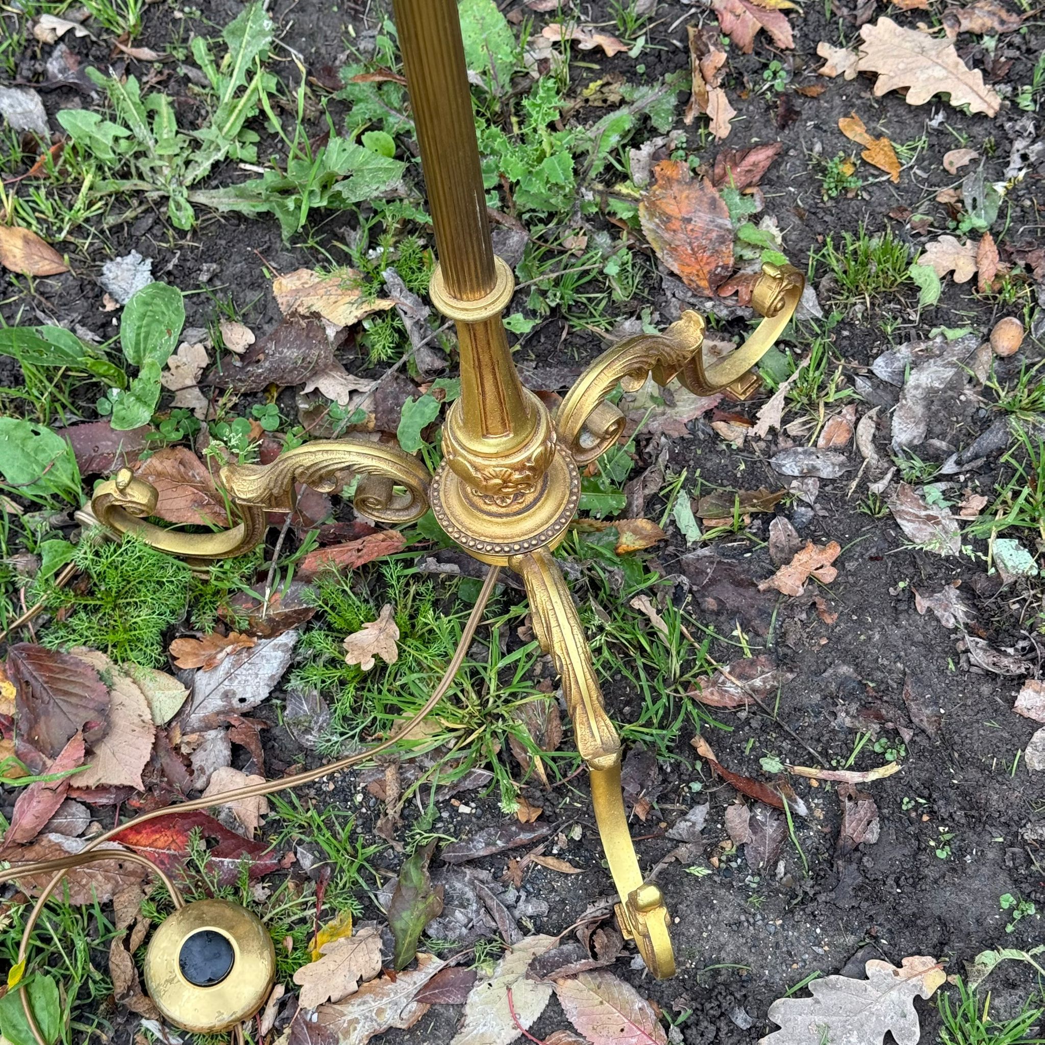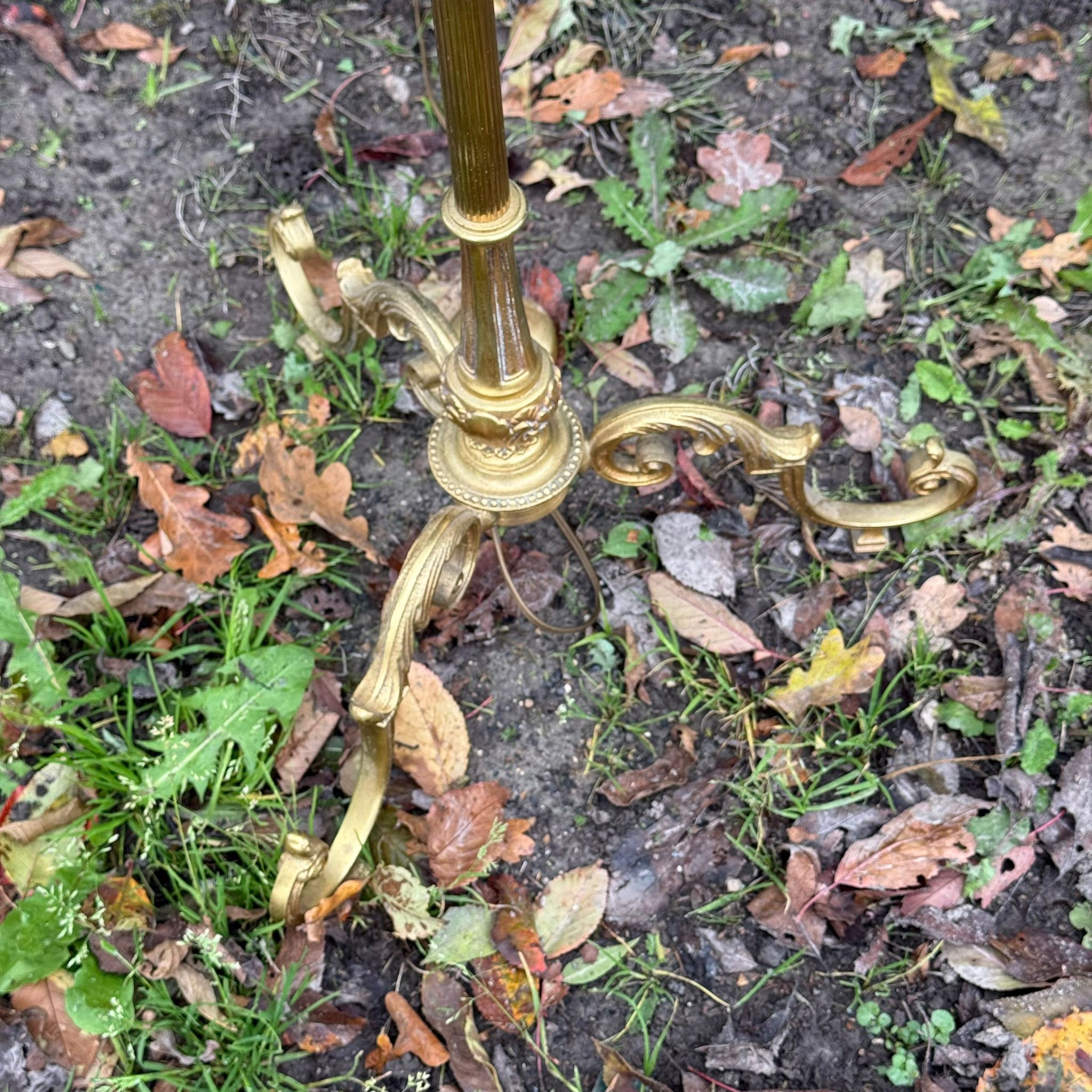 Lampadaires avec fût en métal doré et abat jour année 70.
