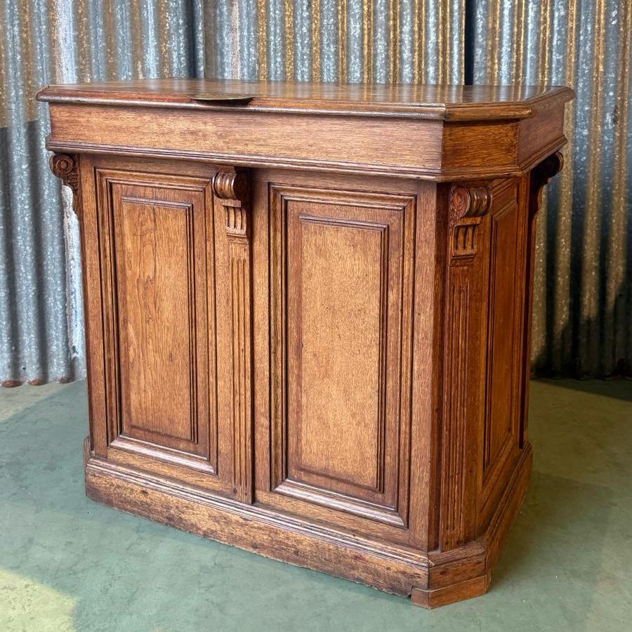 Comptoir ancien en bois sculpté.